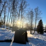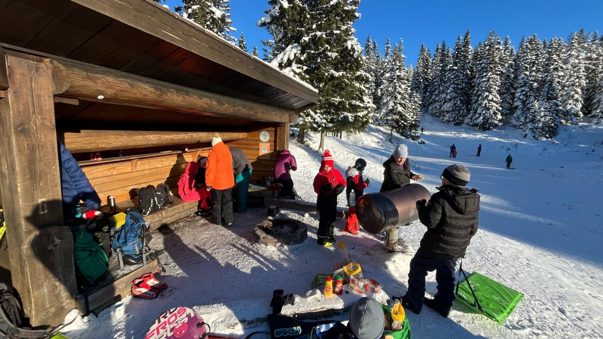 Søndag morgen startet med frokost både for de som lå ute i kulda og speiderne på Leikvinjar. Planen for uteliggerne var opprinnelig å gå på ski tilbake til Leikvinjar, men på grunn av dårlige løypeforhold og treg start på dagen, ble det etterhvert besluttet å bli hentet på parkeringen. Vel tilbake på Leikvinjar tok speiderne ansvar og bidro godt med rydding og klargjøring før hjemreise.